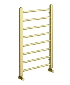 Create an instant focal point in your bathroom with the Arezzo 800 x 500mm 8 bar designer towel rail, features a unique bold design which provides plenty of space for all your towels keeping them gently warm. Manufactured from durable steel with a quality brushed brass finish, this stylish designer towel rail provides superb heat output which will gently warm towels and your bathroom or cloakroom.