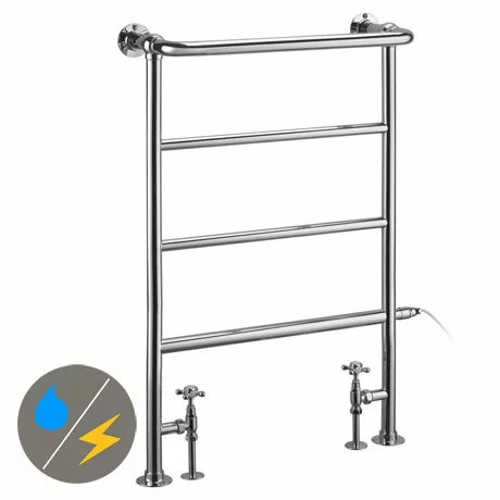 This classic traditional design, is to be plumbed into the main central heating system and used as a radiator/towel rail. It also can be wired into the electric mains for summer towel warming.