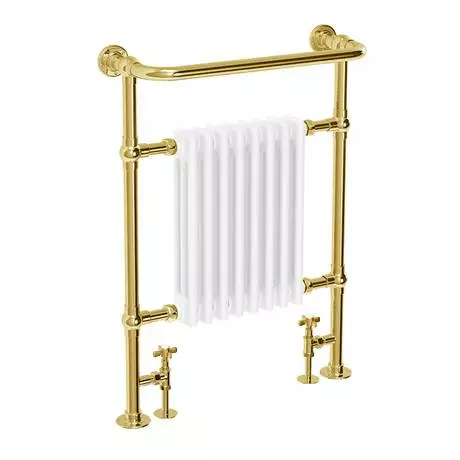 The Chatsworth Savoy is a traditional heated towel rail combining classic towel radiator styling and functionality. Featuring classic ball jointed vintage gold plated steel tubing with a period style stylish white column radiator insert.
