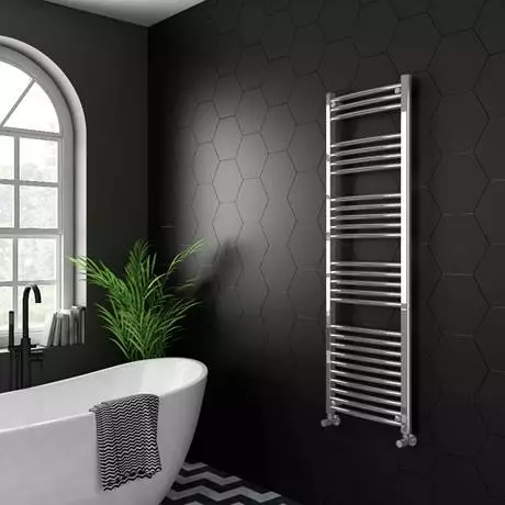 This Diamond Curved Heated Towel Rail will bring a touch of glamour to your bathroom with its gleaming chrome finish. The curved design enables greater airflow to help dry your towels more quickly – ideal for a busy household. This 500mm wide electric towel radiator is designed to be plumbed into the main central heating system and can also be wired into the electric mains, making it perfect for warming your favourite bathrobe in summer too. Supplied complete with fixing kit, plugs and vents for easy installation, this modern towel rail comes with everything you need for easy fitting.