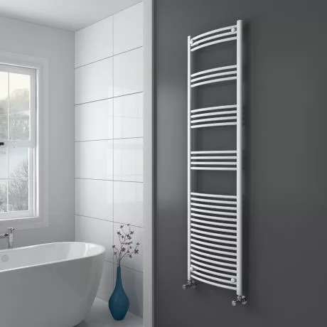A quality 22mm tube diameter standard towel rail with a curved profile, finished in a classic brilliant ice white this luxury stylish towel rail brings a real quality finish to your bathroom. Comes with a 5 year guarantee against manufacturing defects.