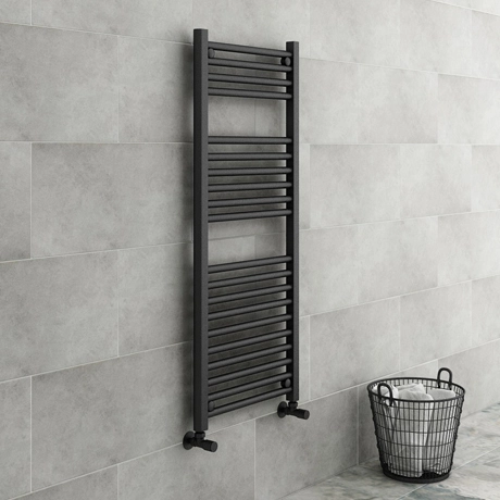 Going for a bold look in your bathroom? Consider this Diamond Heated Towel Rail. In an ultra contemporary dark grey matt finish, the standout look of this towel rail radiator will revamp your bathroom décor effortlessly – especially when paired with lighter tiles. It has a modest width of 500mm, making it a good fit for small and medium sized bathrooms. This anthracite vertical radiator is expertly crafted, too, with a long lasting construction of high grade steel. After radiator valves to complete the look? Choose from our extensive range including the Modern Angled Radiator Valves in Chrome.