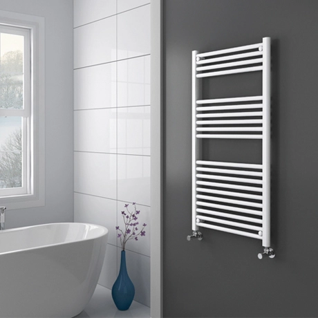 A quality modern 22mm tube diameter standard 600mm wide towel rail with a straight profile, finished in a classic brilliant ice white finish this luxury stylish towel rail brings a real quality finish to your bathroom. Comes with a 5 year guarantee against manufacturing defects.