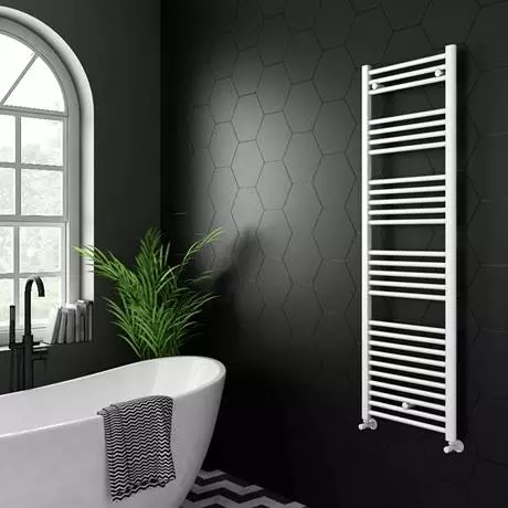 The Diamond 500 x 1600mm straight profile towel rail is finished in classic brilliant ice white and features 27 horizontal 22mm diameter tubes.