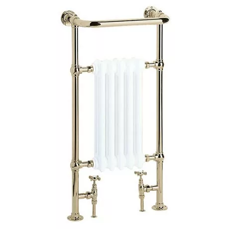 Heritage’s range of heated towel rails complement all types of bathrooms beautifully and range from the classically elegant to moden urban chic. The traditionally styled Baby Clifton Heated Towel Rail features a steel constructed frame which is plated in a durable vintage gold finish and a central white enamel column radiator. This stylish towel rail will add a touch of elegance to any bathroom. Comes supplied with a pair of traditional vintage gold valves.