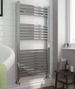The Piazza 9 Bar Heated Towel Rail from Hudson Reed. Handcrafted flat panel designs, featuring a smooth mirrored montage, offer a contemporary design statment. Excellent heat output with an attractive chrome finish.