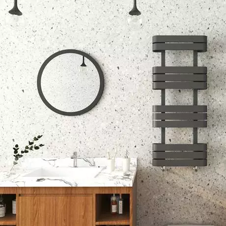 The Milan curved designer vertical heated towel rail features an innovative modern design, manufactured from durable steel with a quality anthracite finish, this stylish curved flat panel towel rail provides superb heat output which will gently warm towels and your bathroom or cloakroom.