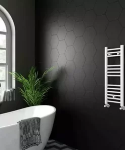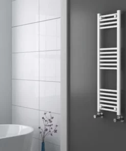 Diamond Heated Towel Rail – W300 x H1000mm – White – Straight