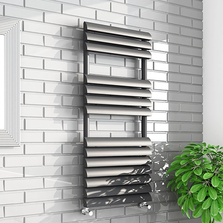 This stylish anthracite designer towel rail is an excellent addition to the Monza range, features a modern elegant design with venetian style rails. Manufactured from durable steel with a modern eye-catching anthracite finish, this stylish towel rail provides superb heat output and is a great way to keep your towels toasty warm. All towel rails come complete with fixing kits for wall mounting.