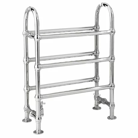A luxurious floor mounted traditional radiator with a 6 bar insert and stylish ball joints from period bathroom specialists Old London, with its classic design this radiator would look great in any bathroom. Manufactured to the highest standards and constructed from strong chrome plated durable steel. It delivers excellent heat and is ideal for warming towels when in the bath or shower.