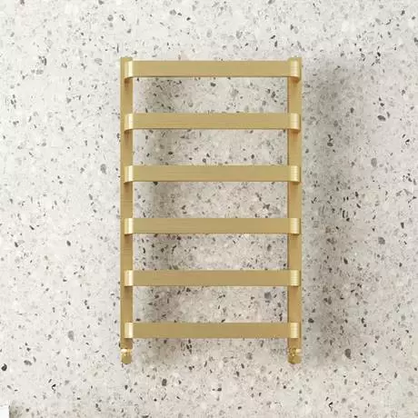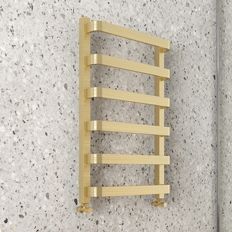 A stunning modern vertical designer towel in a modern brushed brass finish, the Venice towel rail features 6 innovative D-shaped rails providing a stylish way to keep your towels warm, as well as neat and organised. The Venice range of sleek towel rails are manufactured using the finest materials and offers outstanding heat output. Ideal for any contemporary setting or interior.